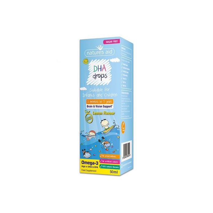 Natures Aid Mini DHA drops contain a daily source of DHA & EPA which are essential in supporting a child’s brain function & vision.