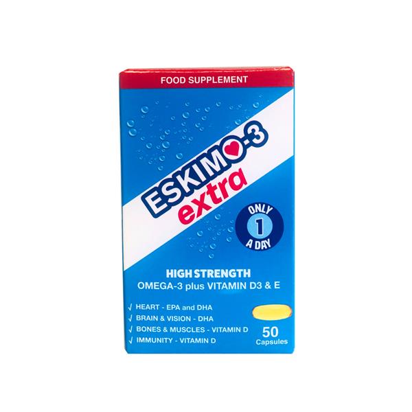 - Eskimo-3 Extra High Strength Omega 3 plus Vitamins D3 & E 50 caps