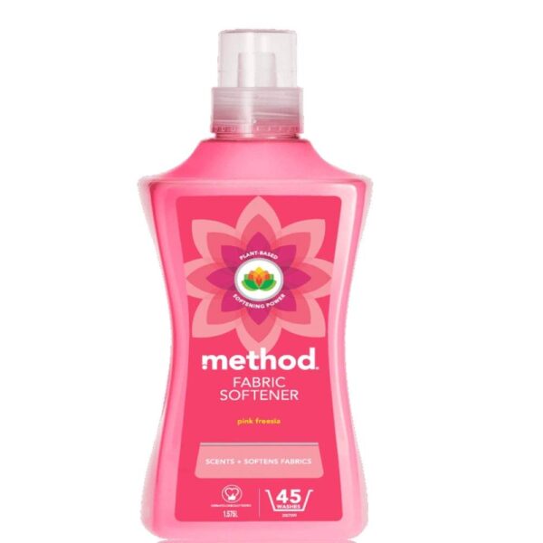 Method Fabric Softener – Pink Freesia will leave your clothes will feeling soft and refreshed. This 100% recycled bottle contains 45 washes and has naturally derived softening agents that will gently hug your fabrics to remove that static and clinginess. This fabric softener really is a new start for all your laundry with a comfortaing scent the whole family will enjoy!