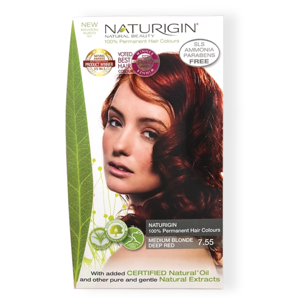 Naturigin Organic Based 100% Permanent Hair Colours Medium Blonde Deep Red 7.55