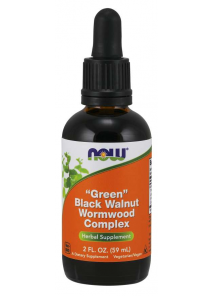 NOW® ‘Green’ Black Walnut Wormwood Complex is an herbal formulation that combines three traditional herbal extracts in one convenient liquid supplement. This product is manufactured with extracts of unripe (green) black walnut hulls (Juglans nigra), wormwood (Artemisia absinthium) and clove buds (Syzygium aromaticum).