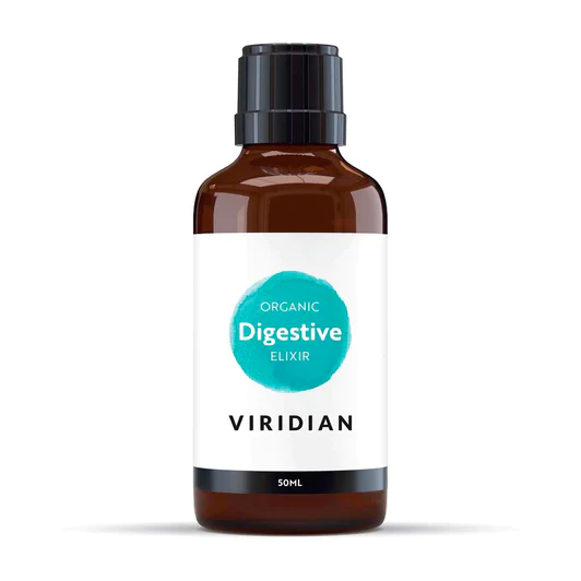 Viridian Organic Digestive Elixir stimulates the digestive system prior to eating, ensuring optimum digestion occurs. There is a long-standing tradition of use for digestive aids, also known as digestifs when tinctured in alcohol, including digestive bitters. The digestive process begins in the mouth, when the taste buds stimulate saliva to release enzymes. Cultures around the world have traditionally used bitter flavours to stimulate the digestive system. Creating a tincture by steeping bitter-tasting roots, leaves, berries and fruits in alcohol and serving the mixture before or after a meal. Often the formula was accompanied by more pleasant tasting carminative herbs such as peppermint or fennel.